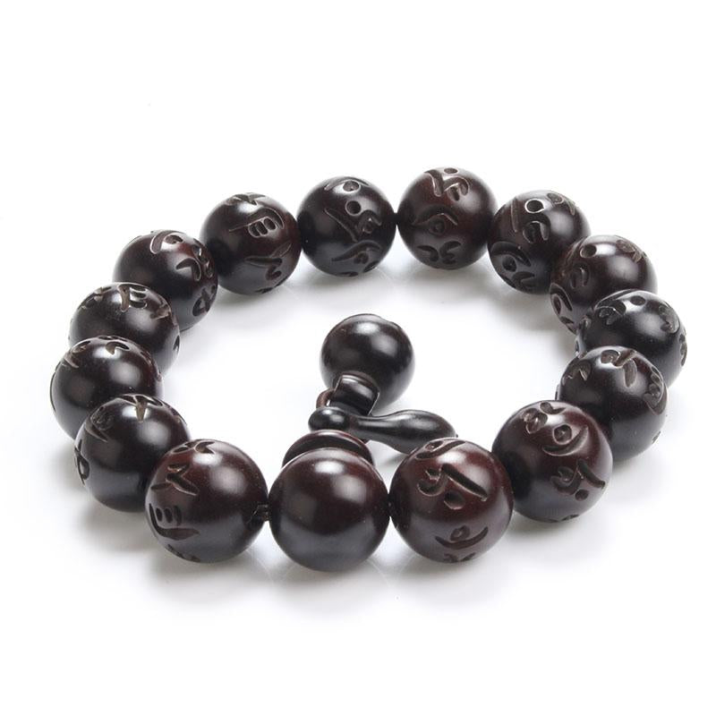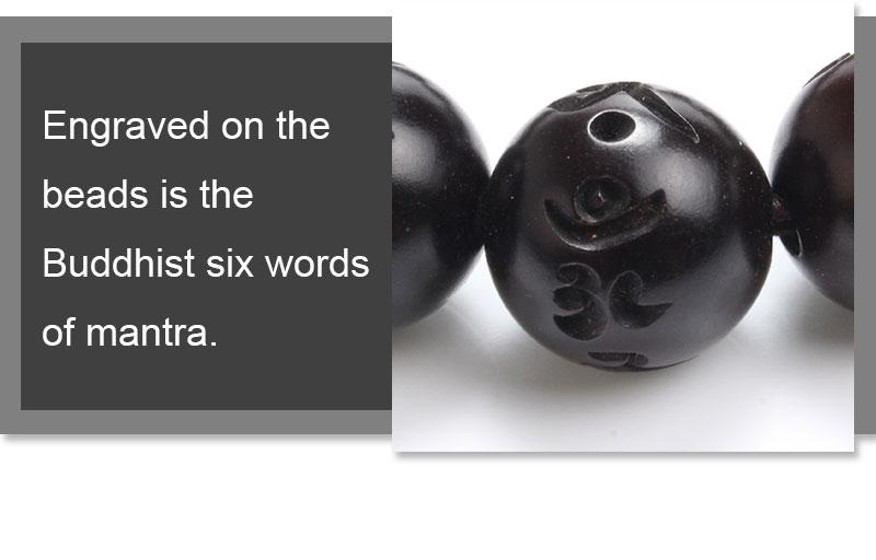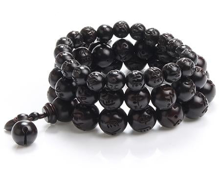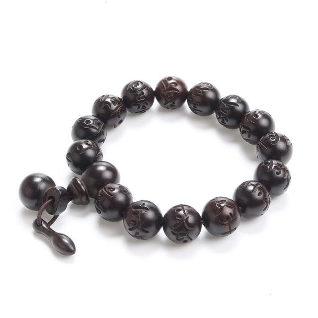 Polished African Blackwood Hand-carved Sanskrit Buddhist Prayer Bracelets