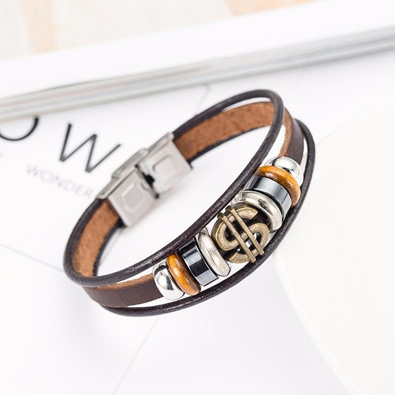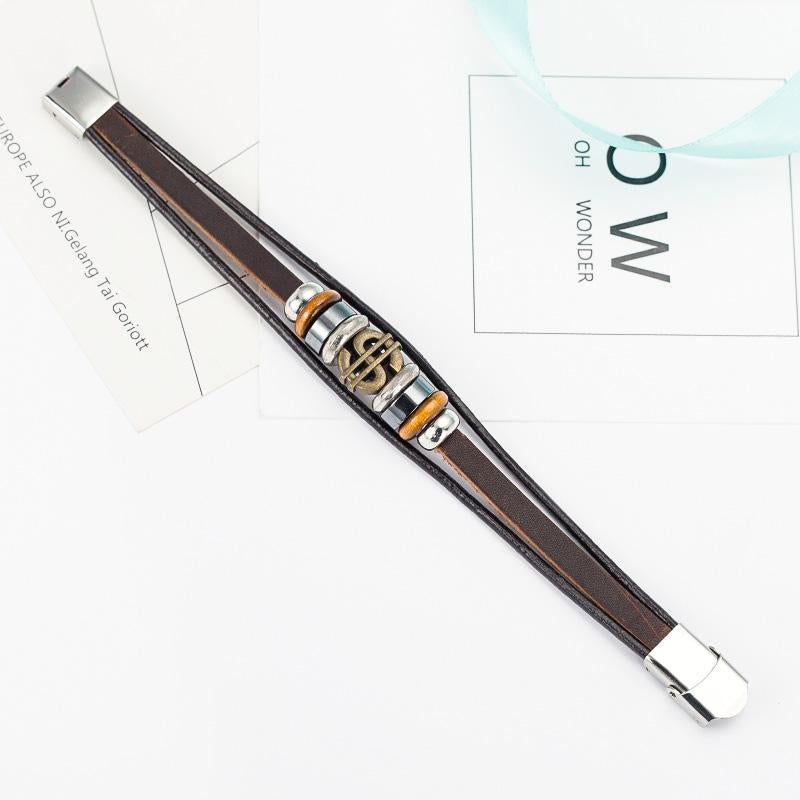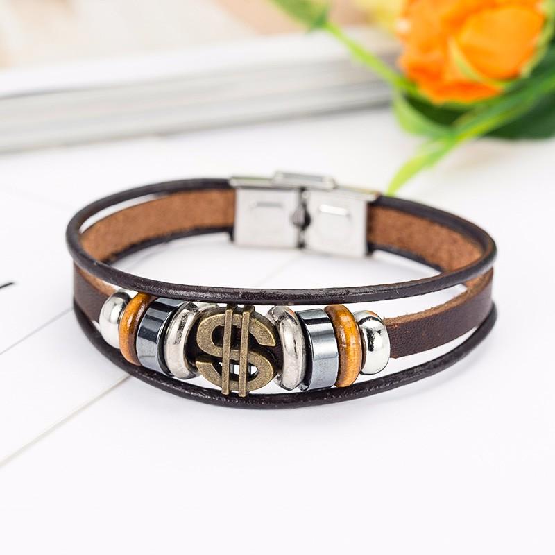 Antique Bronze Dollar Sign Leather Bracelet