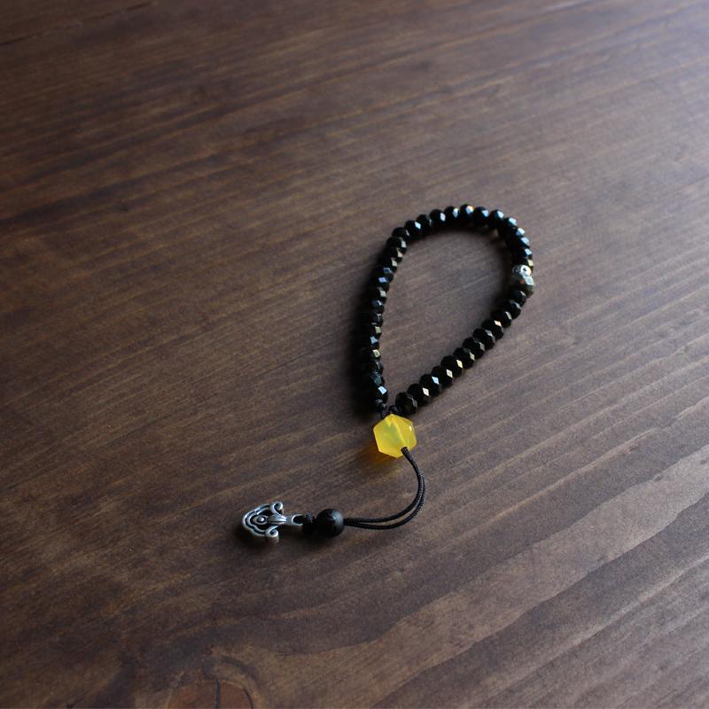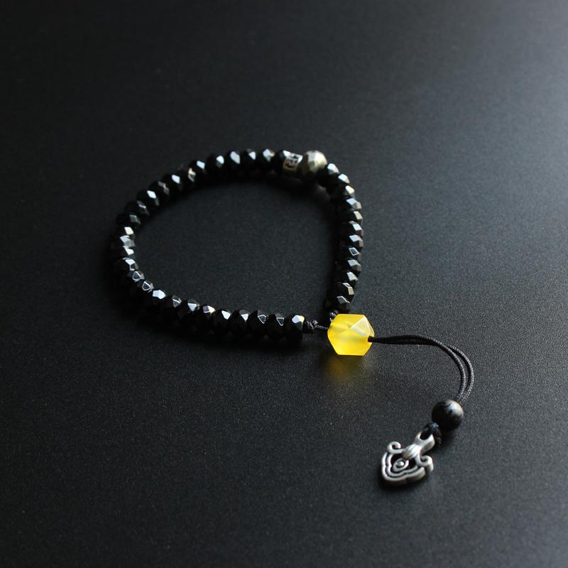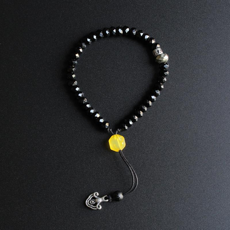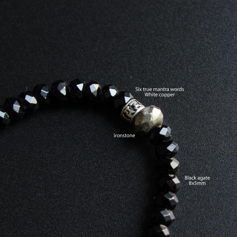 Black Stone & White Copper Om Mani Padme Hum Charm Bracelet