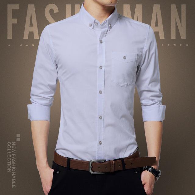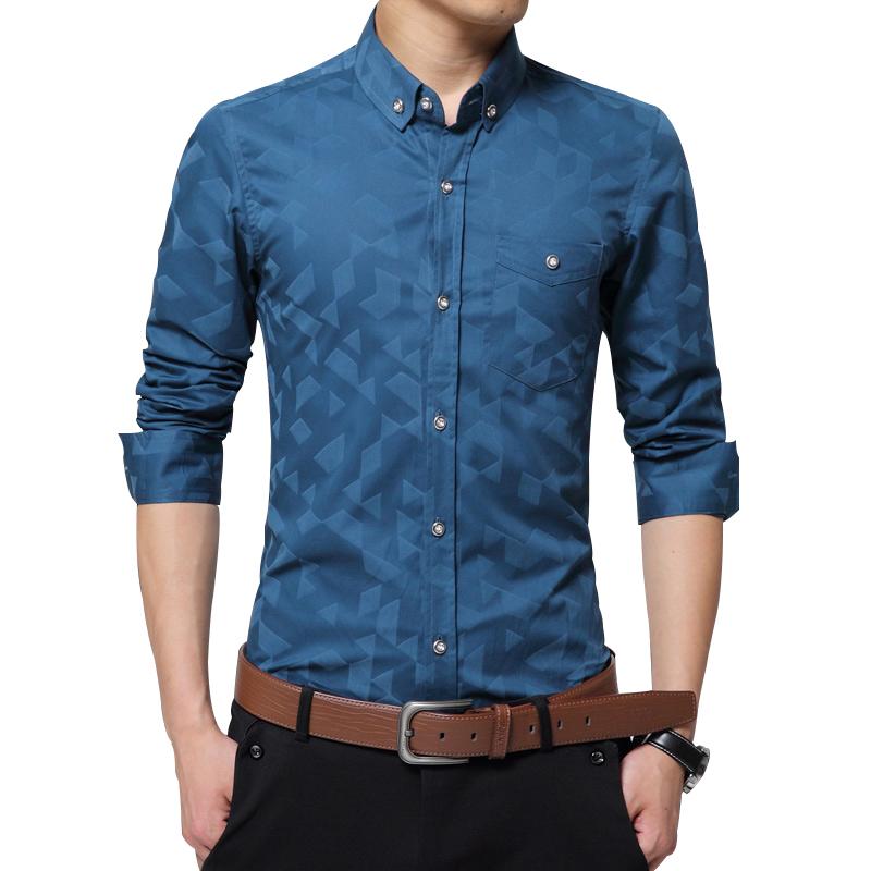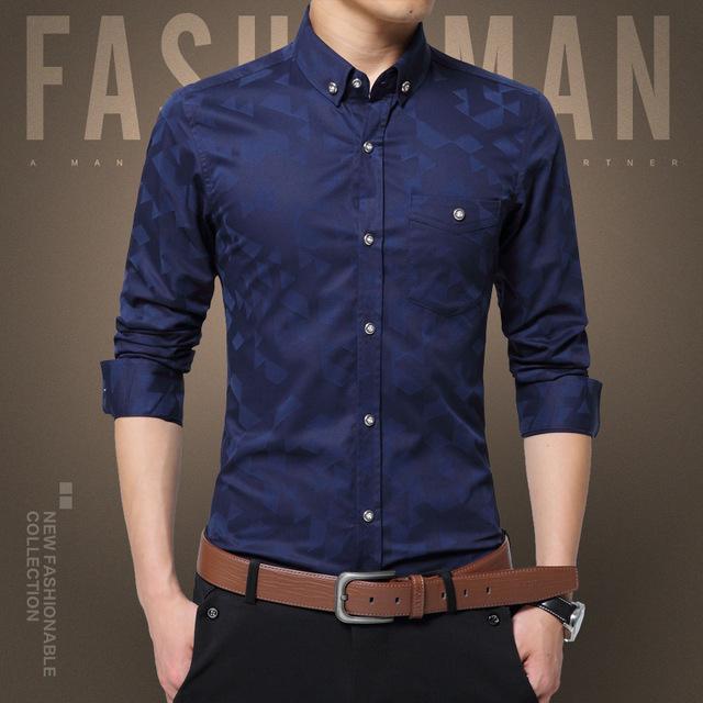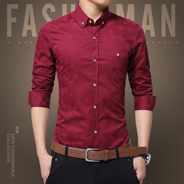 Casual Long Sleeve Jacquard Weave Slim Fit Shirt