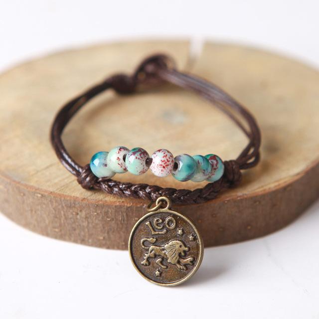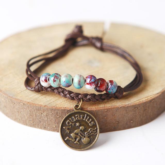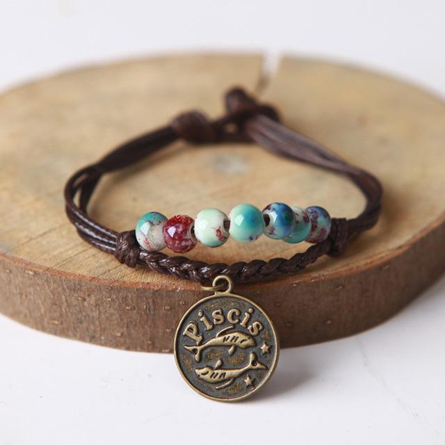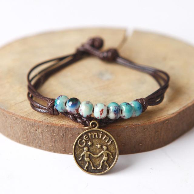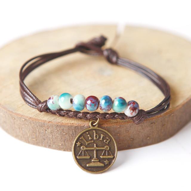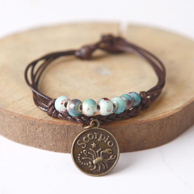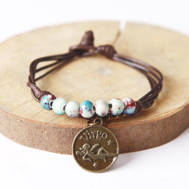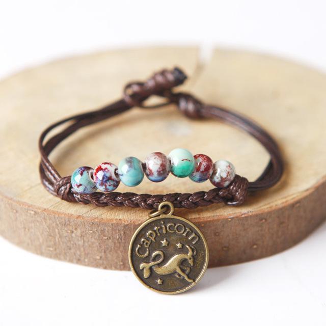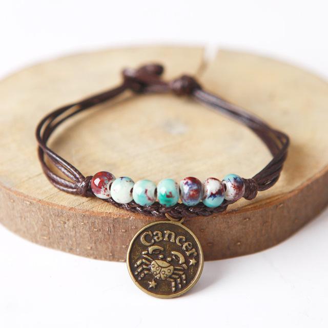 Ceramic Beads & Wax Rope Zodiac Bracelet