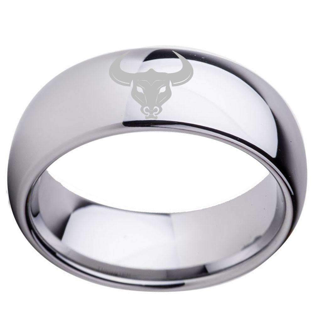 Dome Polished Taurus Engraved Tungsten Carbide Ring