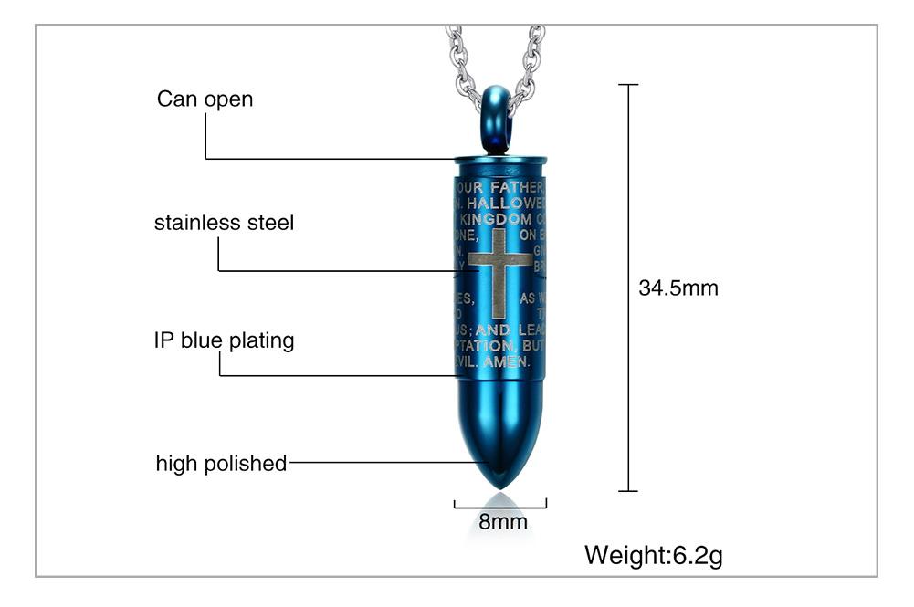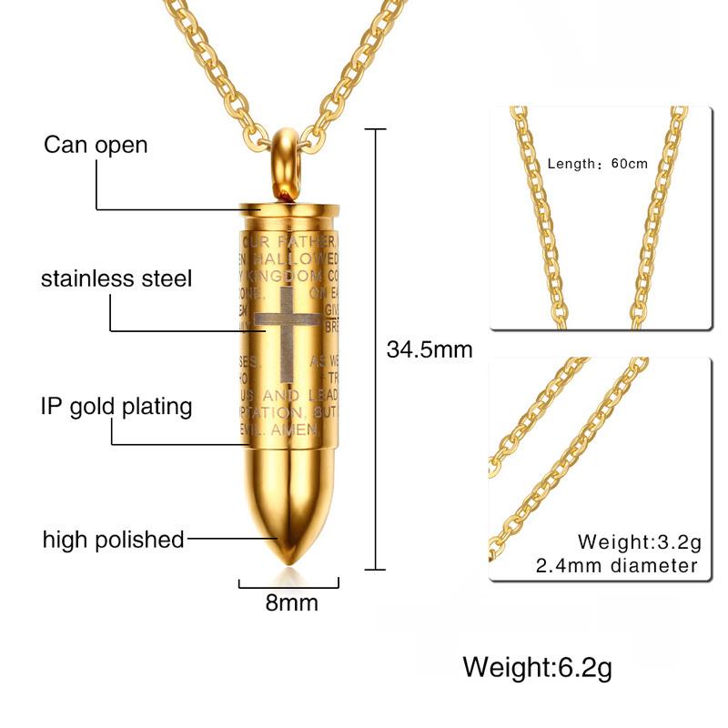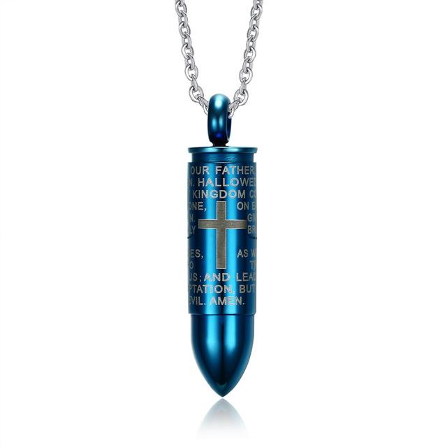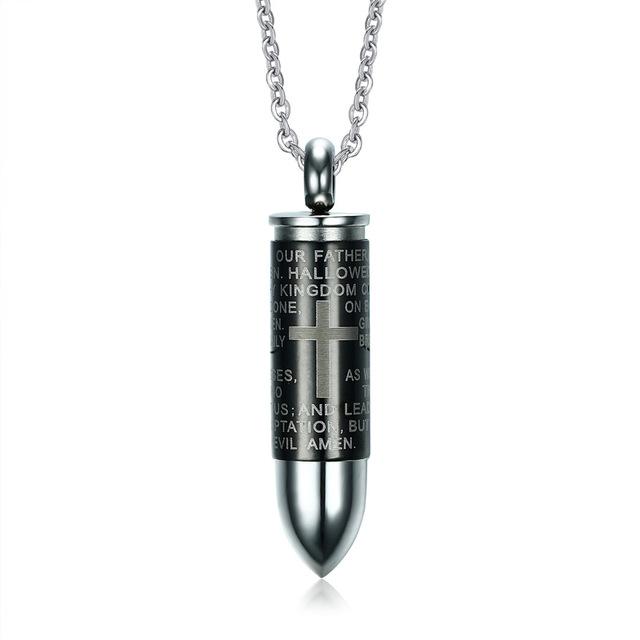 Engraved Lord's Prayer & Cremation Storage Bullet Necklace - Zodeys