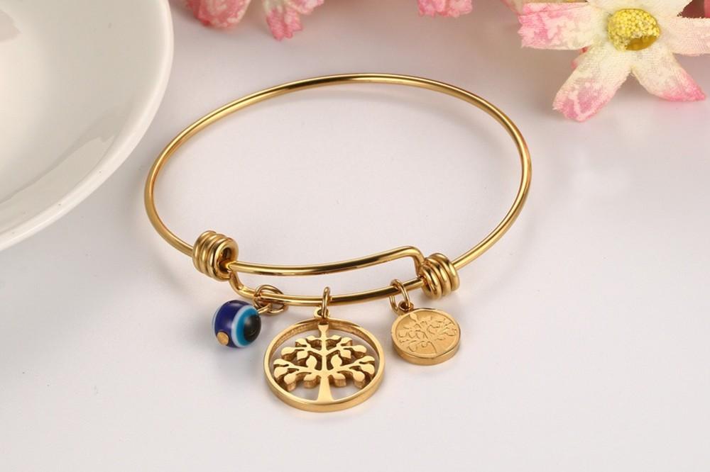 Gold Tree of Life Wired Bangle Bracelet