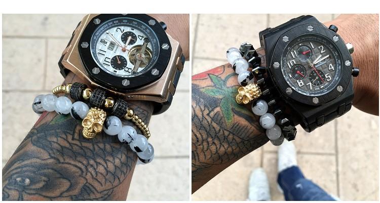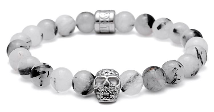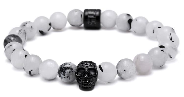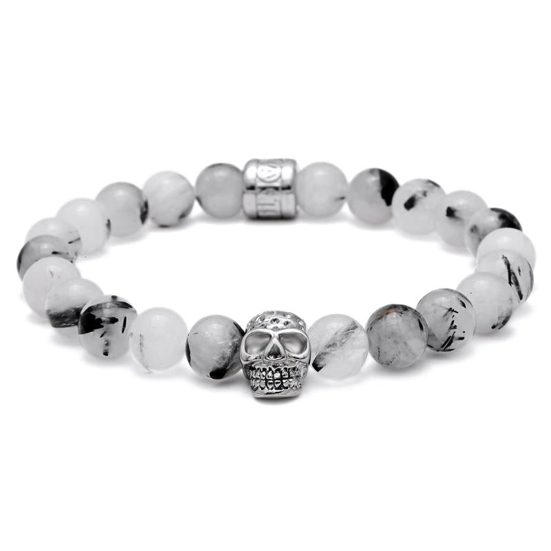 Goshenite Vanilla Haze Beaded Skull Bracelet - Zodeys