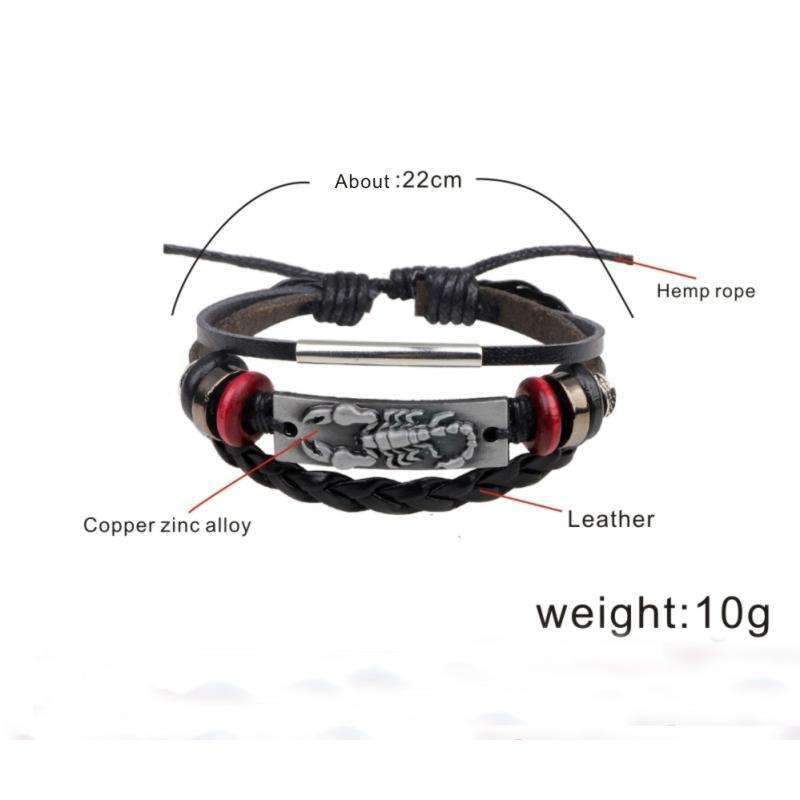 Hemp Rope & Leather Handmade Scorpio Bracelet - Zodeys