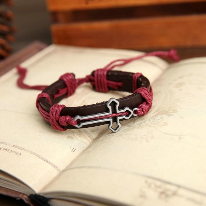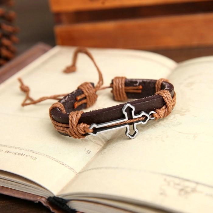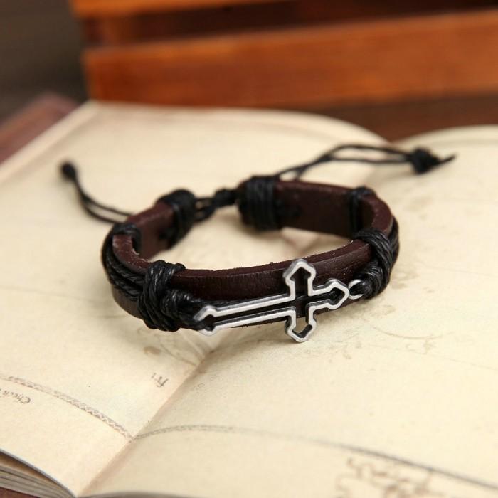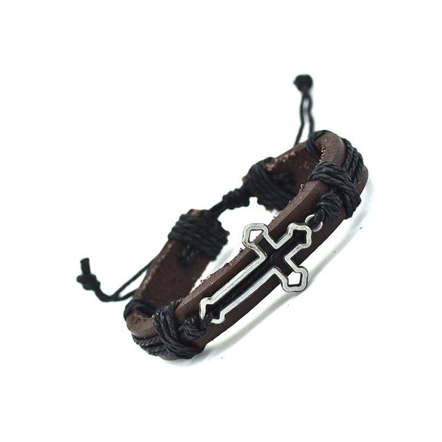 Hollow Cross Genuine Leather Bracelet - Zodeys