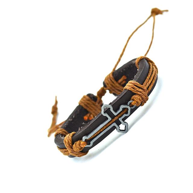 Hollow Cross Genuine Leather Bracelet