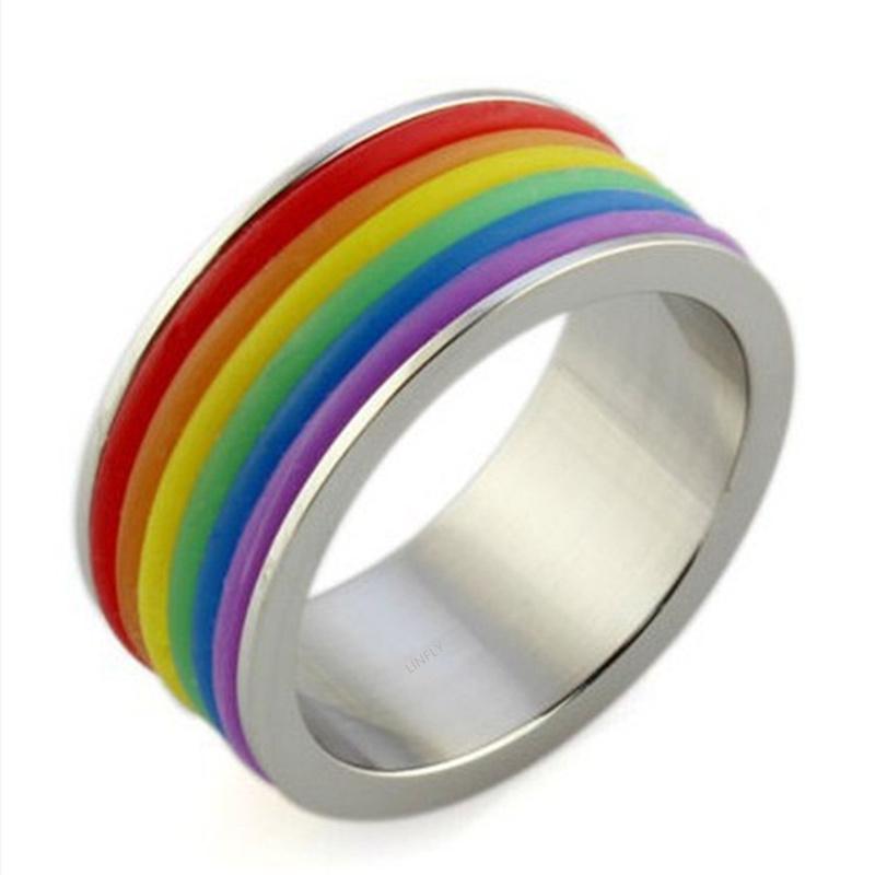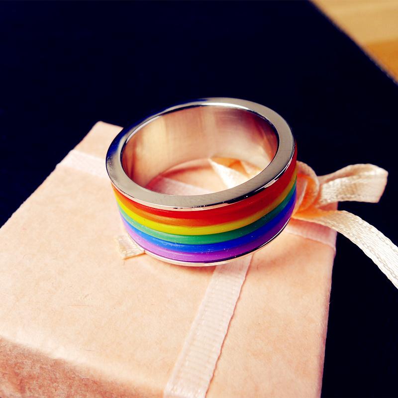 This brand new Inlaid Rainbow Flag Premium Stainless Ring is the perfect jewelry for all proud members and loyal allies of the LGBTQ+ Community.  It offers great style and premium-quality metal for a price that you will surely fall for. This unisex Rainbow Ring is exquisitely created from Premium 316L Stainless Steel and has a surface width of 9mm.  It is also available in US size variations of 6 to 13 and has a worldwide FREE SHIPPING option that you can avail when you buy one.  This beautiful ring is both stylish and meaningful, so make it yours now and wear something that shows who you really are with pride.