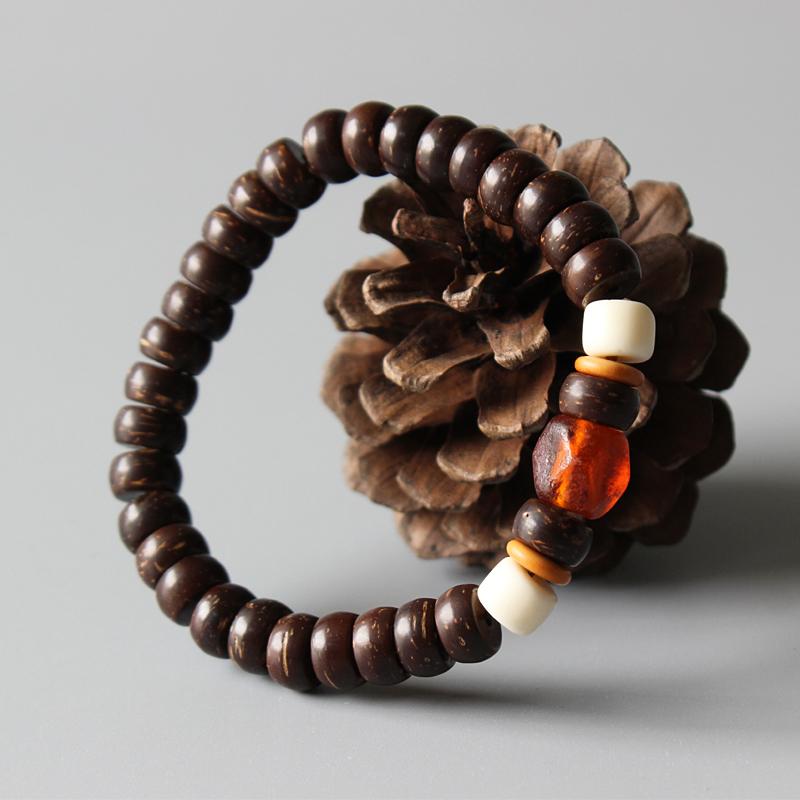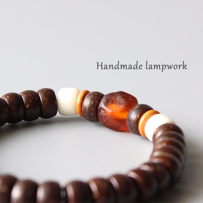 Lampwork & Natural Coconut Shell Beaded Stretch Bracelet