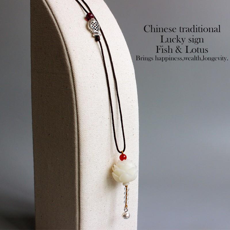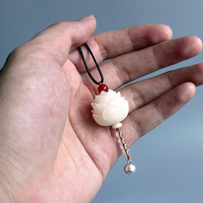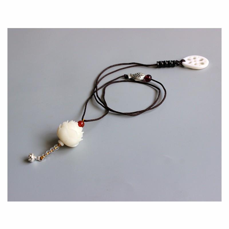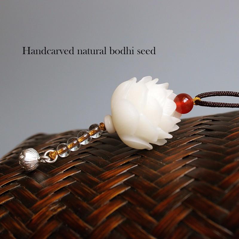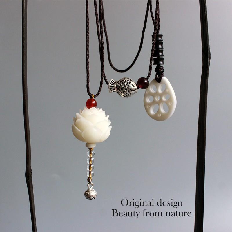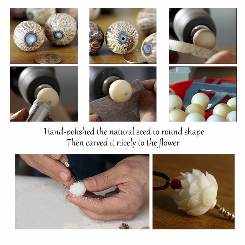 - This necklace has TWO One is a Carved Flower made of Bodhi Seed and the second is a Carved Lotus Root crafted from Tagua Nut.