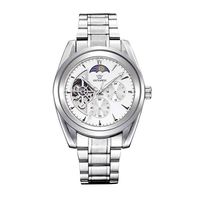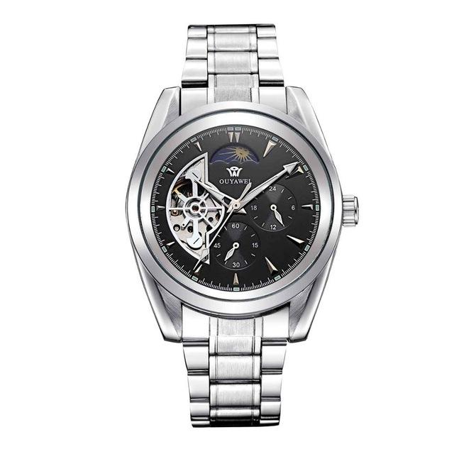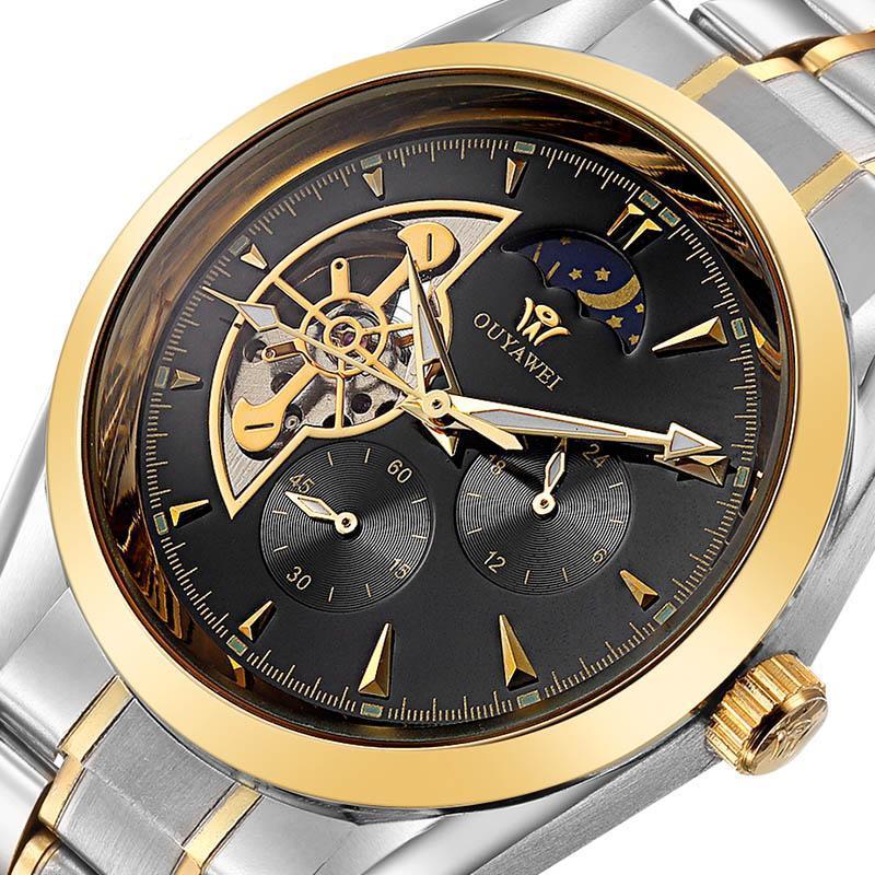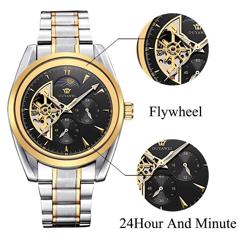 Luxury Gold Mechanical Skeleton Onyx Watch