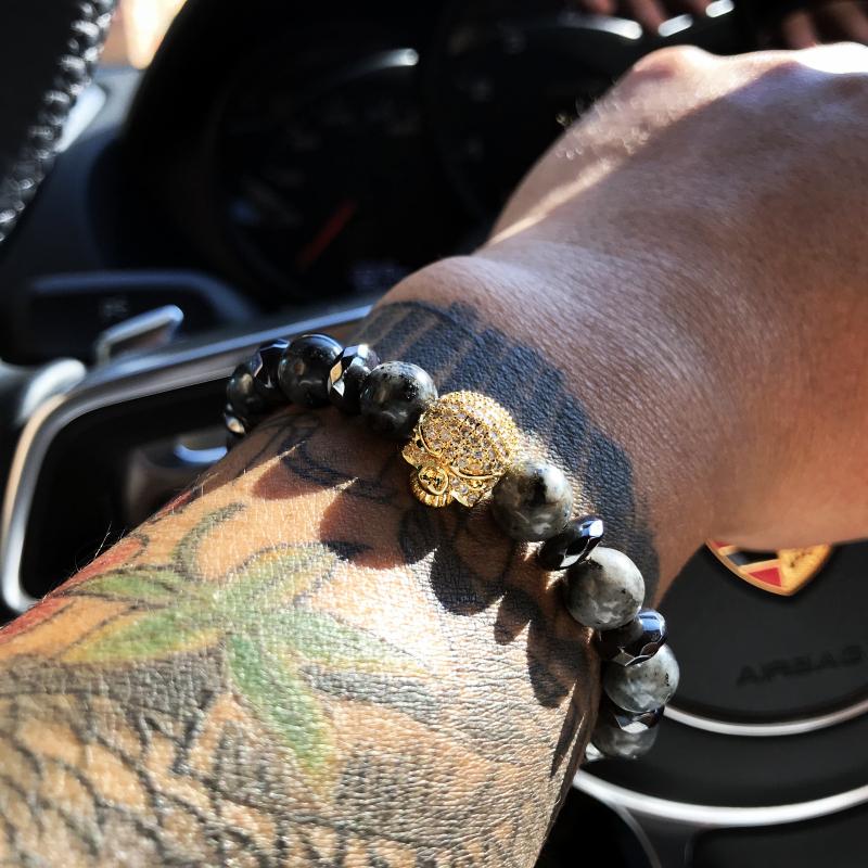 Machiavelli Grey Jasper Stone Micro Paved Bracelet - Zodeys