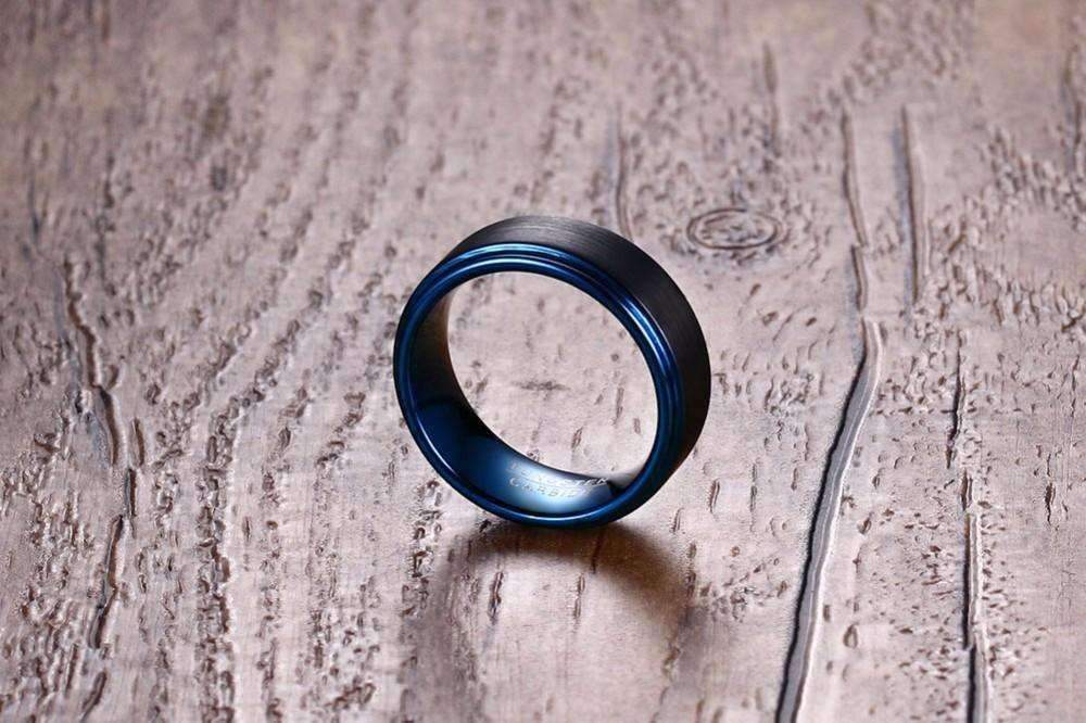 IP Blue Plated Tungsten Carbide with a Matte Finish. Aside from that, this ring also features a weight of 14.7 grams and a surface width of 8mm. And to make it even better, this ring comes in US sizes of 7 to 12, allowing guys of different body types to find a variation that will fit them perfectly.