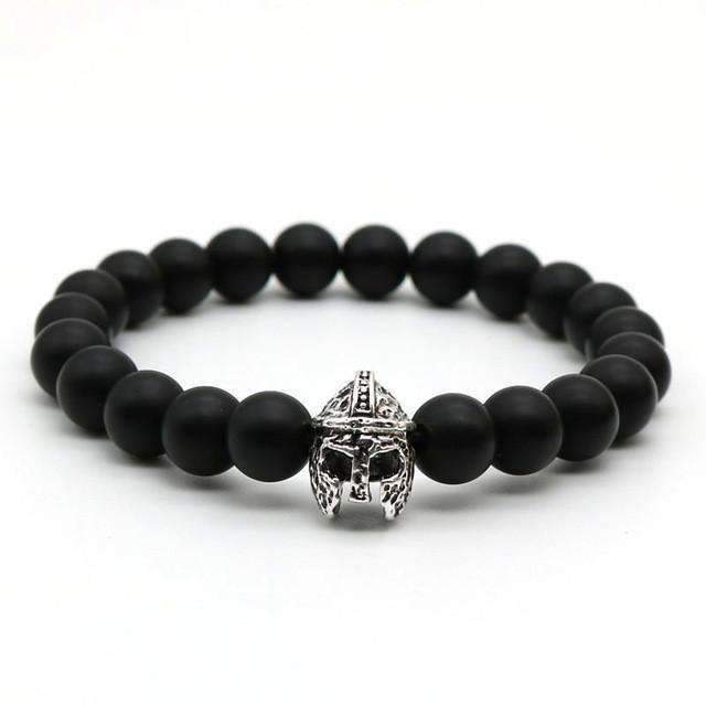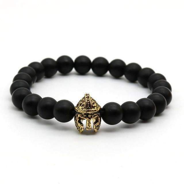 Matte Onyx Natural Stone Roman Warrior Helmet Men's Bracelet - Zodeys