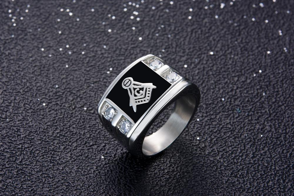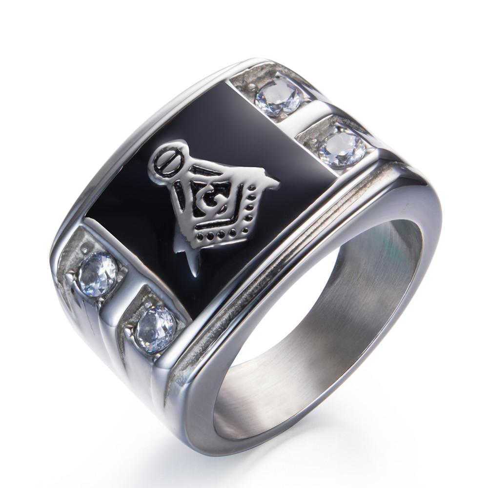 Men's Gold & Rhinestone Signet Masonic Ring