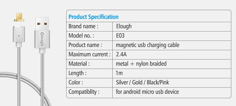 Micro USB Cable Magnetic Charger For Android Mobile Phones