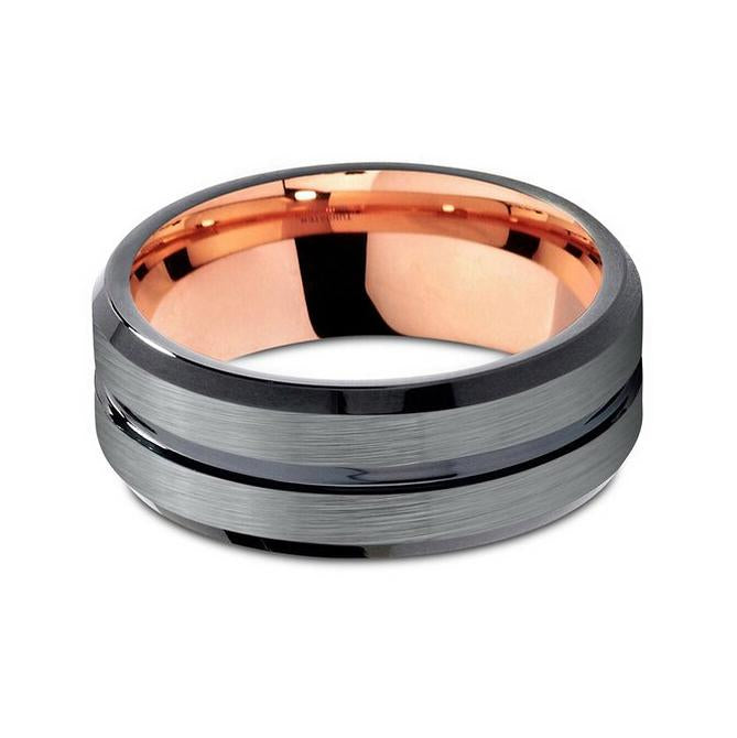 Brushed Rose Gold Inlay Grooved Tungsten Ring