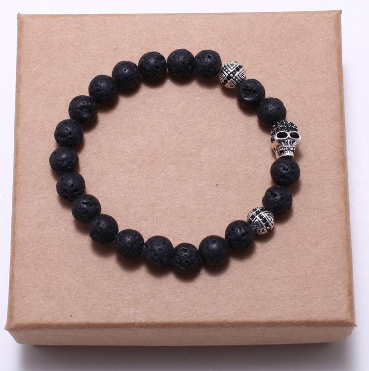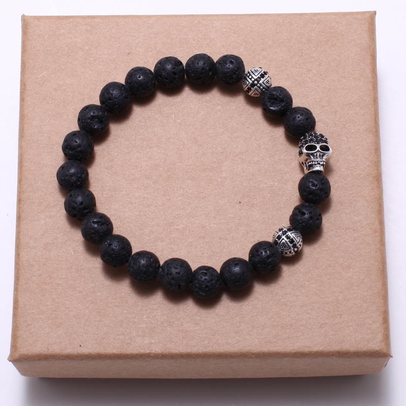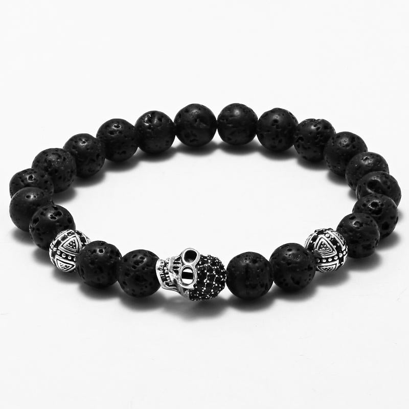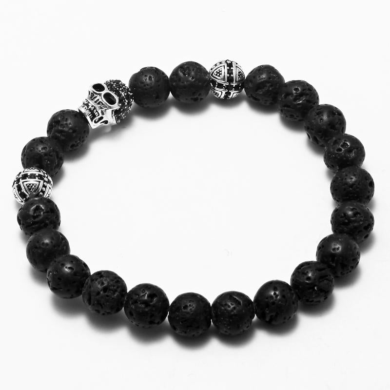 Mr. Sauce Black Lava Stone Skull Bracelet