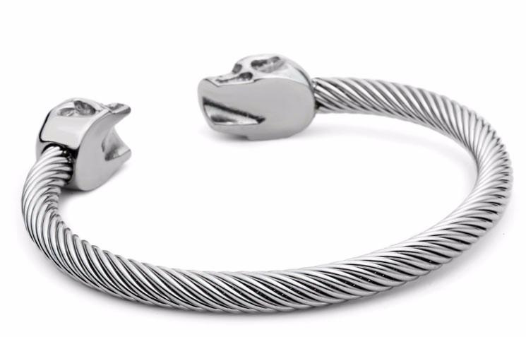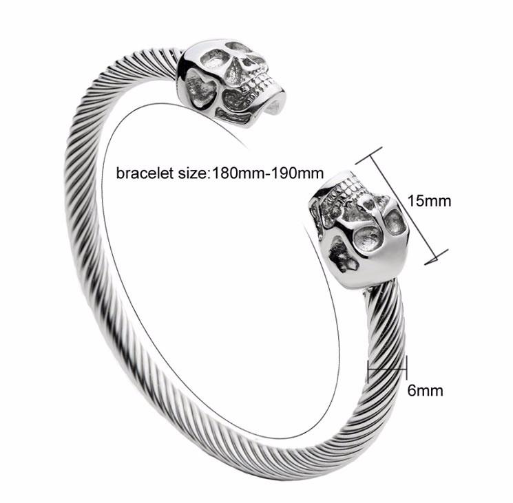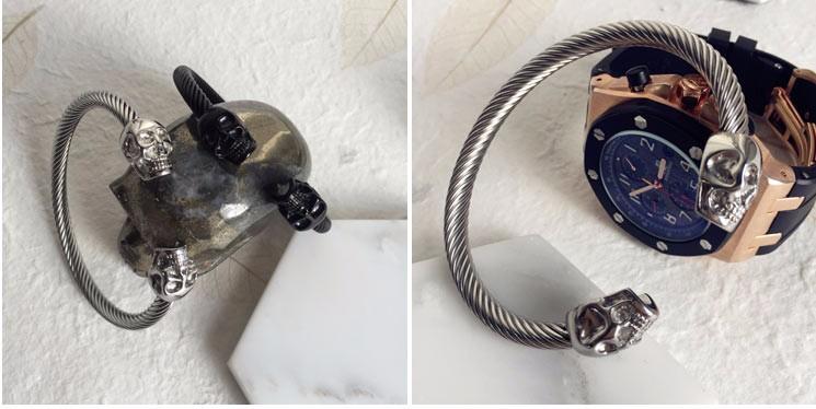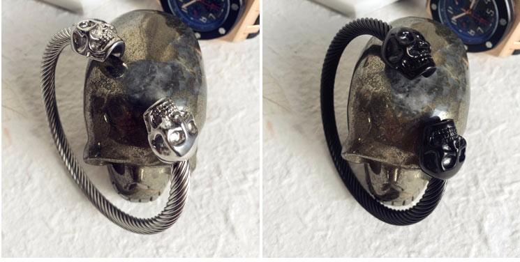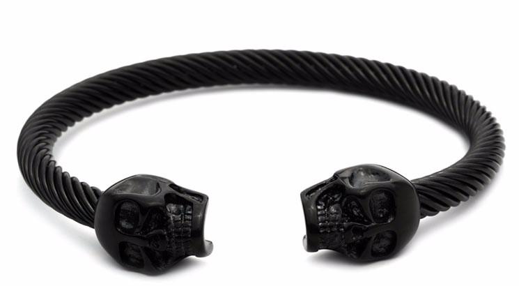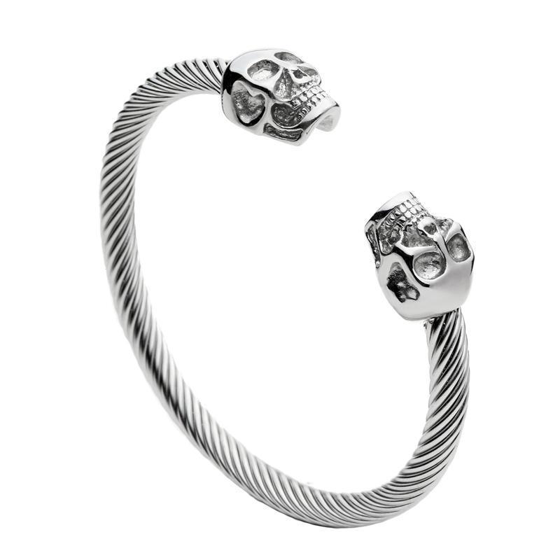 Titanium and features two skulls on both ends. It has a size of 180mm-190mm and is available in two different color options. The Muerte Cuff Bangle contains all of these wonderful characteristics, making it an accessory to die for.
