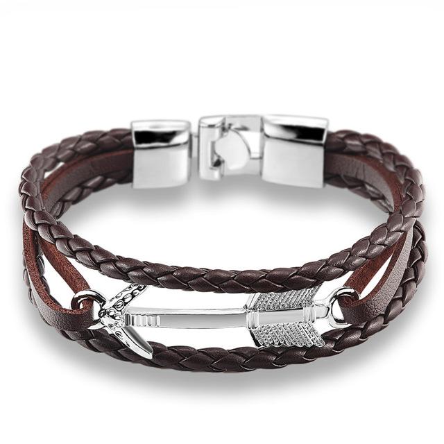 Multi-Layer Feather Arrow Anchor Leather Bracelet