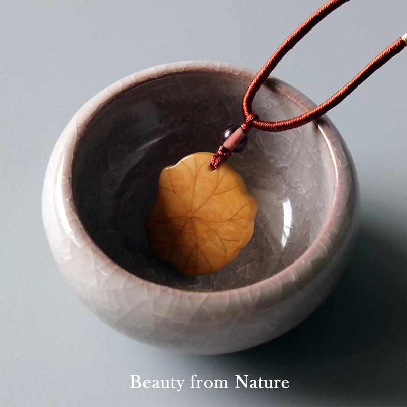 Natural Weathered Tagua Nut Lotus Leaf Pendant Necklace