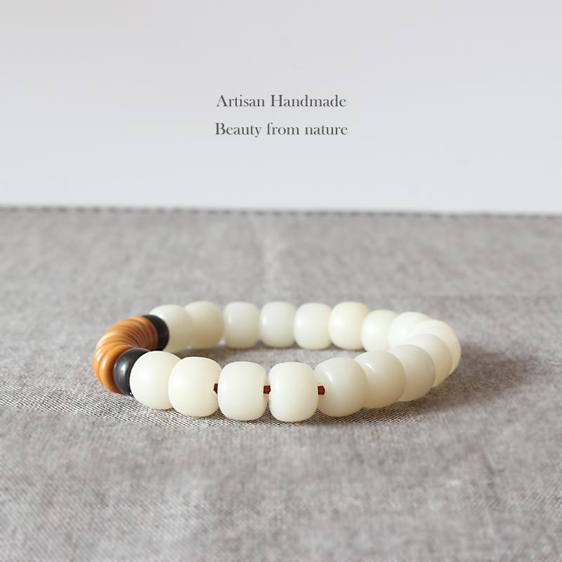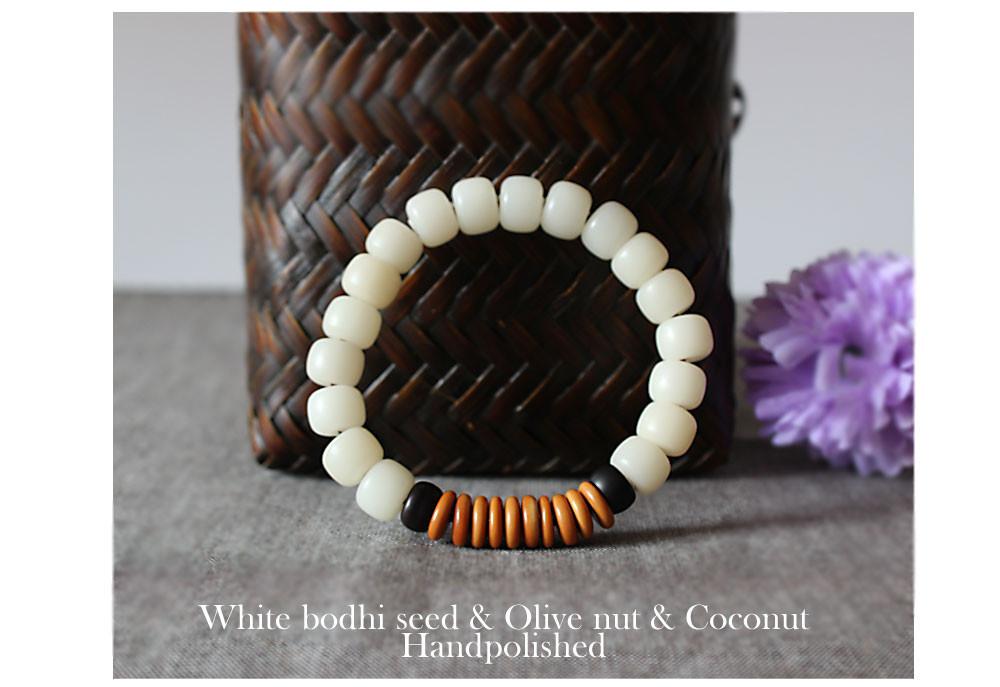 Natural White Bodhi Seed Coconut Shell Olive Nut Bracelet