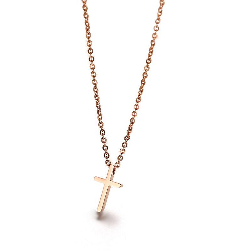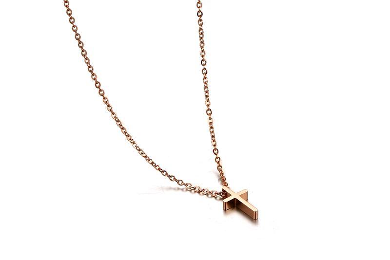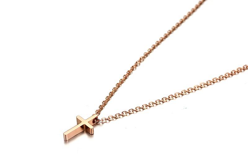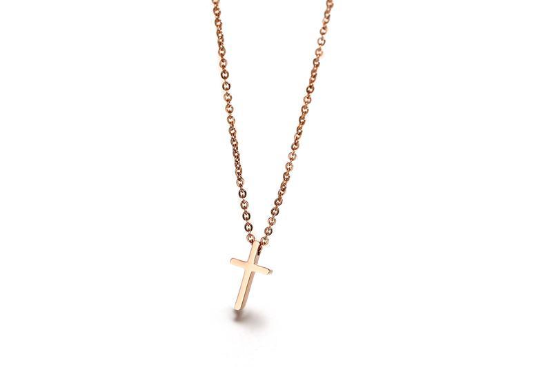 Polished Rose Gold Cross Necklace