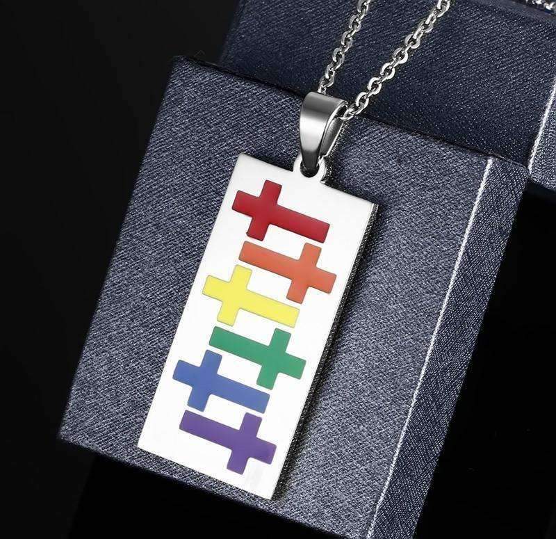 Rainbow Cross LGBT Pride Dog Tag Pendant Necklace