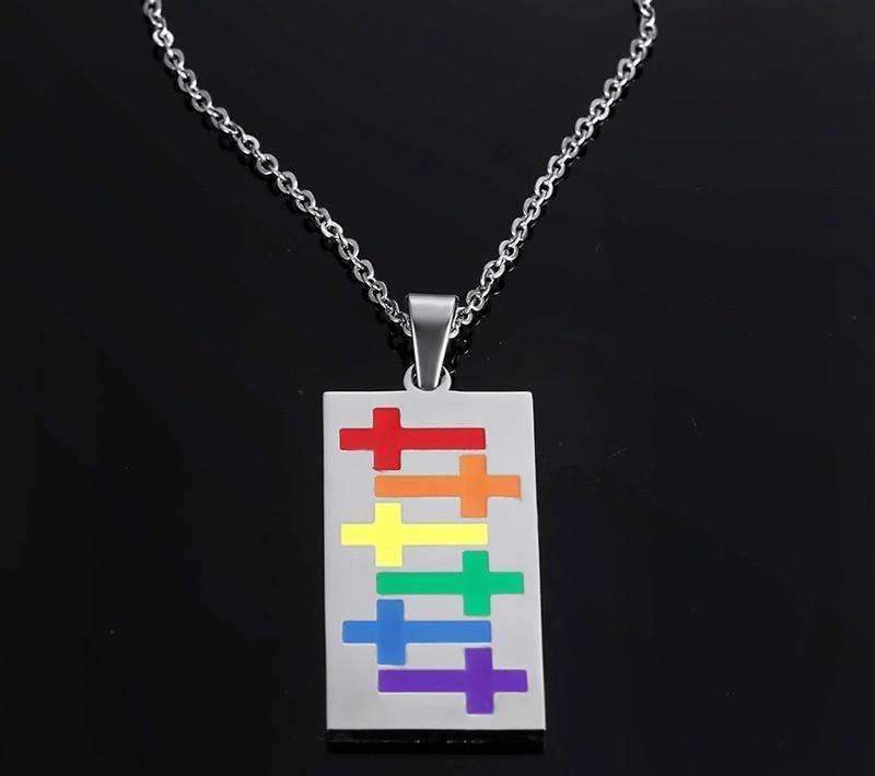 Rainbow Cross LGBT Pride Dog Tag Pendant Necklace - Zodeys