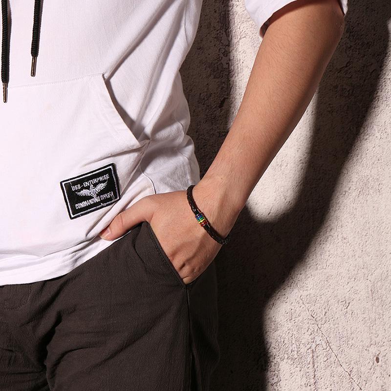 Show that you’re proud of who you are by putting on this Fierté – Rainbow Pride Magnetic Buckle Leather Bracelet. It has an extremely durable braided strap that was engineered from Premium Quality Leather, giving you the assurance that it has outstanding quality. In addition to that, this Fierté Bracelet also flaunts an efficient Stainless Steel magnetic buckle with a beautiful rainbow flag design. It doesn’t stop there because this bracelet also gives you a choice of having it finished with Gold or Silver Plating. And with a length of 19cm to 22cm, there surely is one that will fit you seamlessly.
