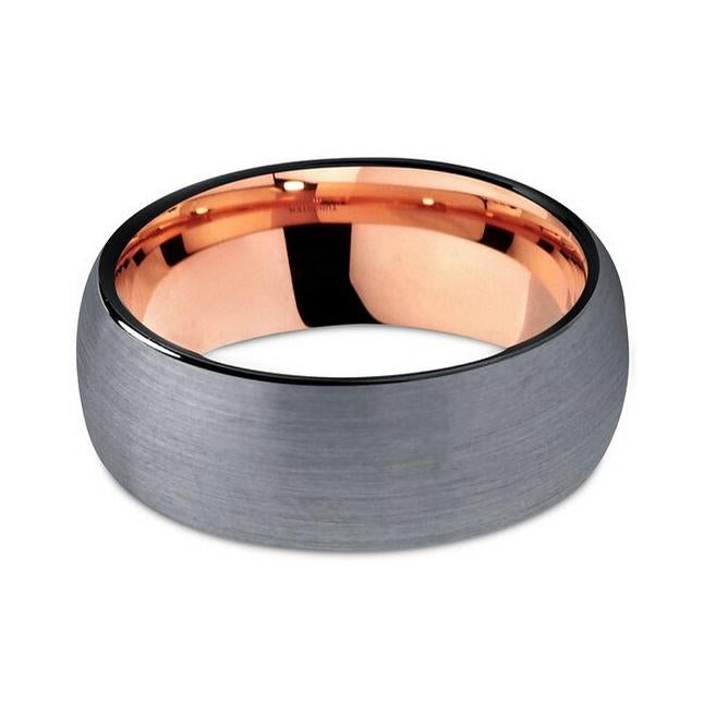 curved by hand, adding a personal touch to each one of them. With an impeccable design and premium material, this Rose Gold Brushed Tungsten Band is the perfect accessory to wear for all types of occasion.