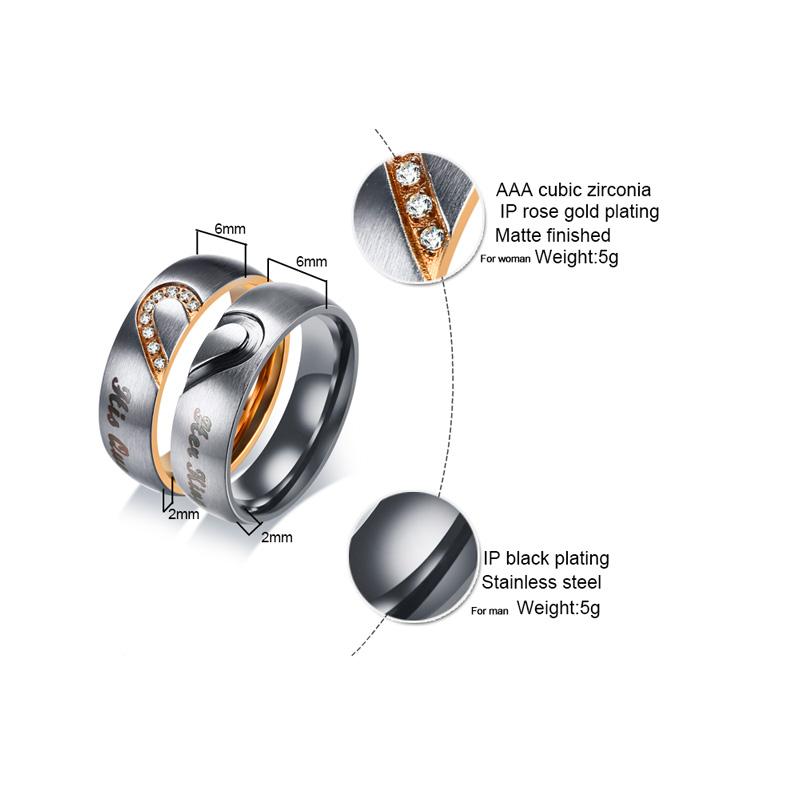 Rose Gold & Onyx Black Matte Finished 'Queen & King' Rings