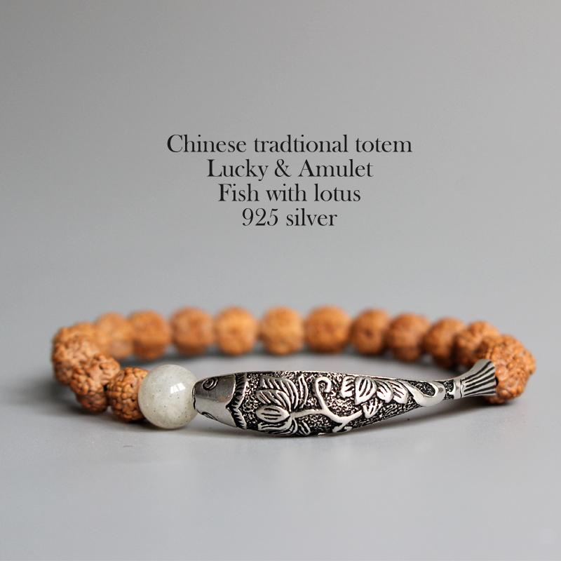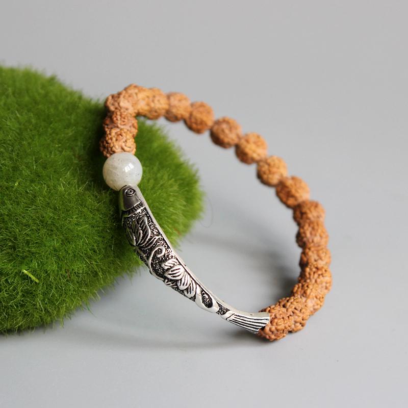 Rudraksha Seeds Thai Silver Lucky Fish Bracelet