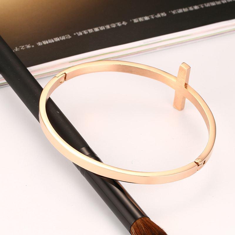 Sideways Cross Rose Gold Rhinestone Paved Bracelet