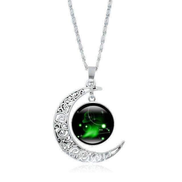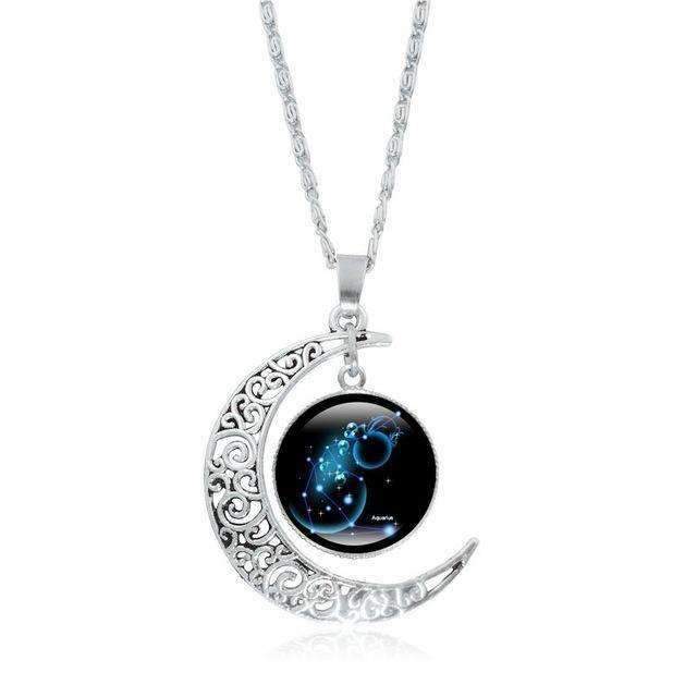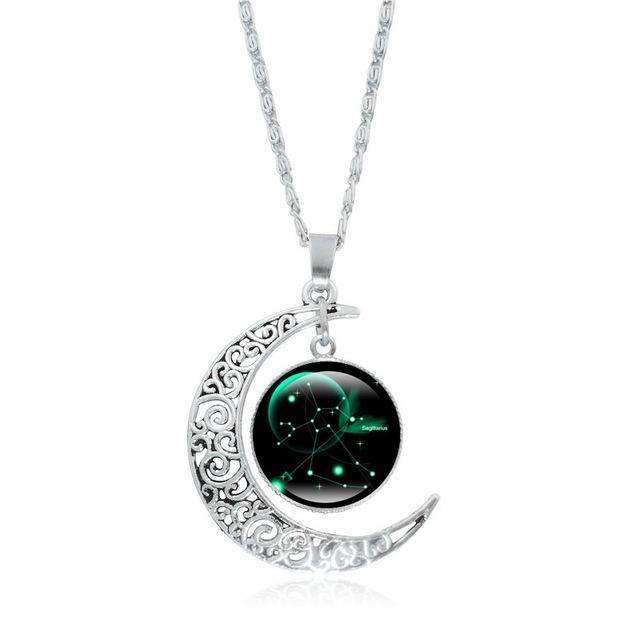 The Silver Crescent Constellation Necklace displays the beautiful constellation that represents your astrological sign. This silver necklace is made from Premium Zinc Alloy that's been silver plated, and guaranteed to never oxidize, remaining in pristine and immaculate condition for a lifetime. Its vintage look is meant to represent the priceless value of one's own unique personality &