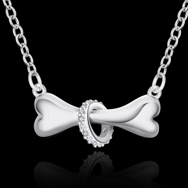 Silver Paw & Dog Bone Pendant Necklace