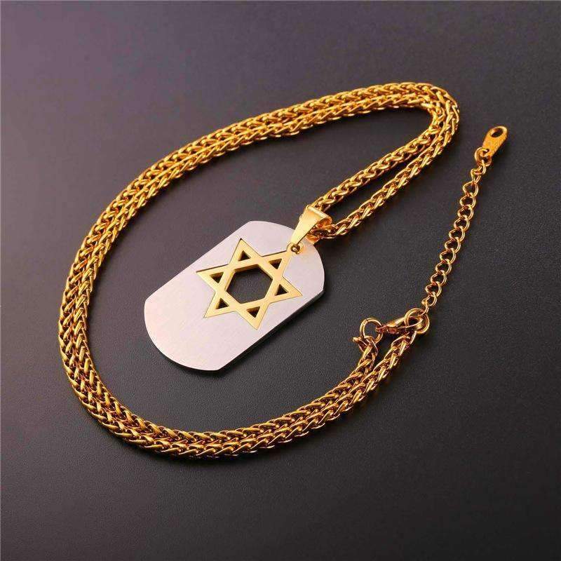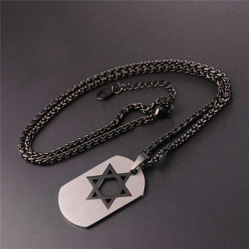 Star of David Dog Tag Pendant Necklace