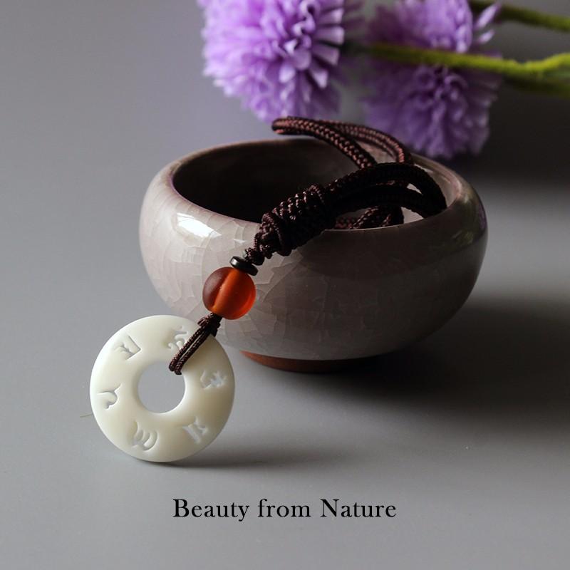 Tagua Nut Om Mani Padme Hum Simple Amulet Necklace