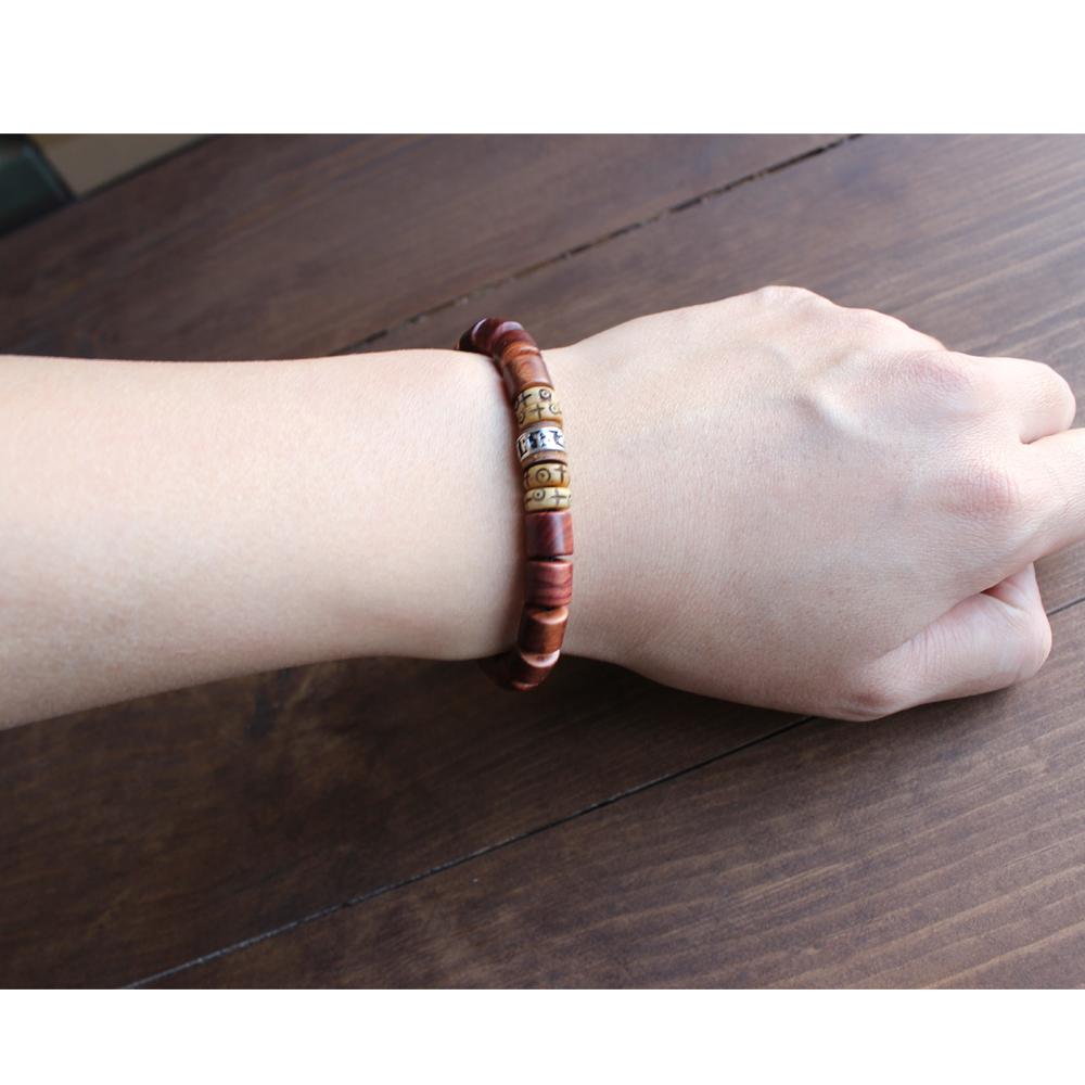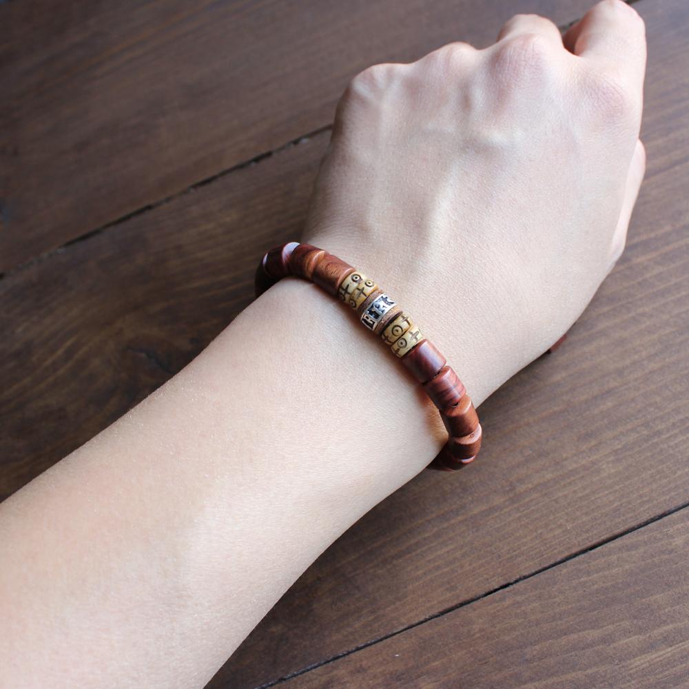 Material(s) of bracelet : Natural Red South Indian Sandalwood, White Copper, Thai Silver, Yak Bone &