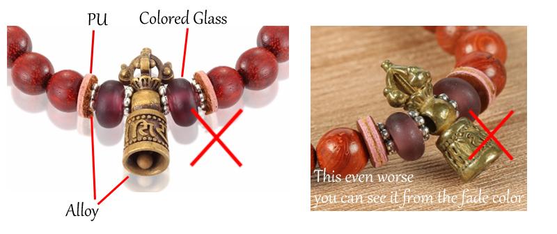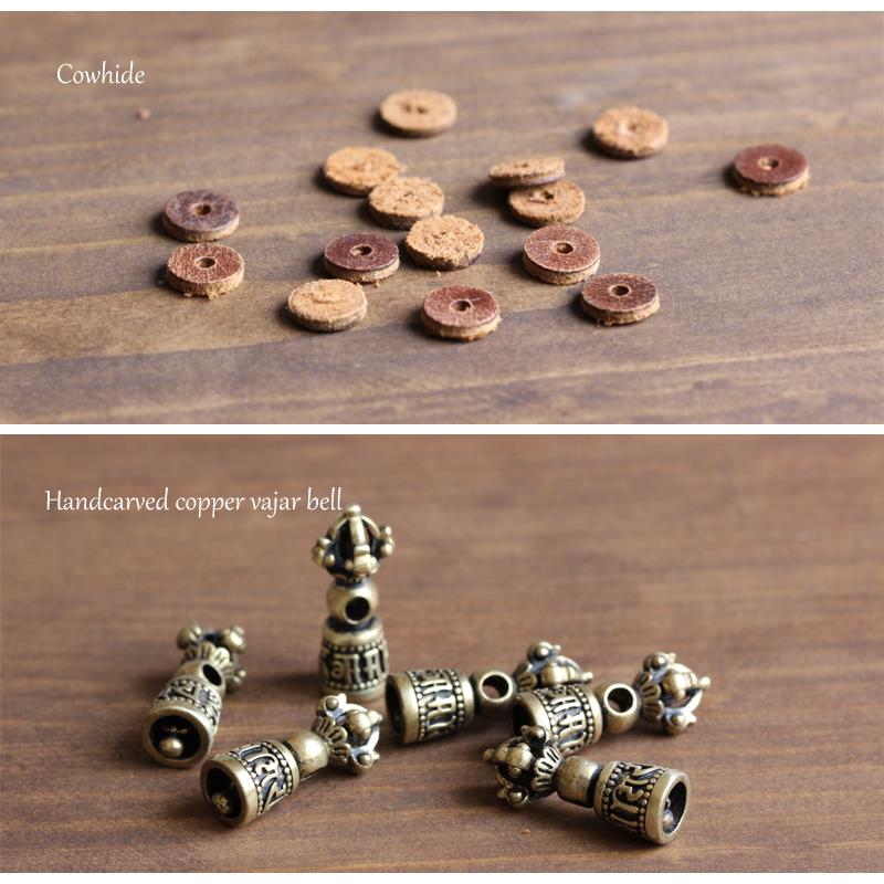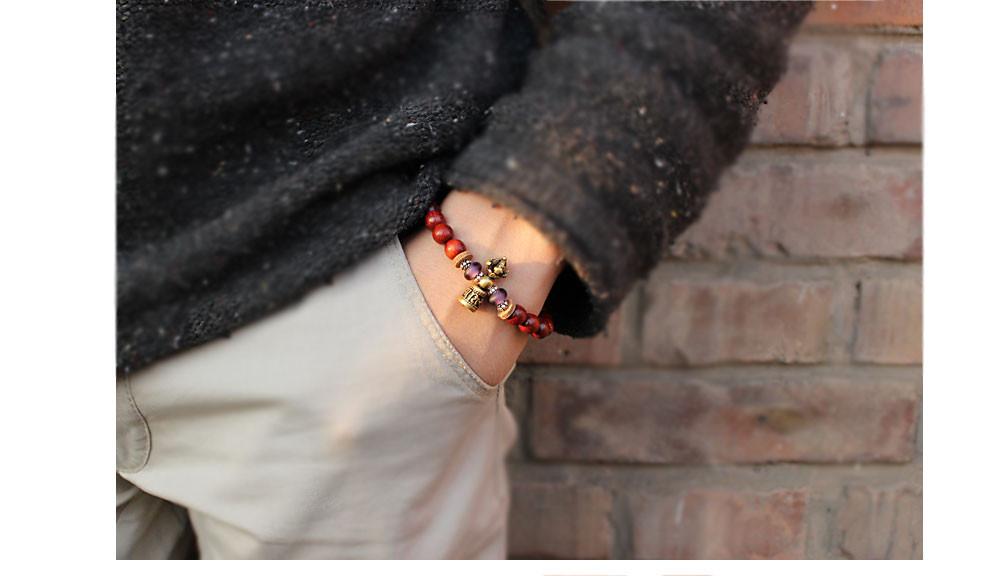 Hand-Carved Copper Vajra & Bell Natural Red Sandalwood Bracelet
