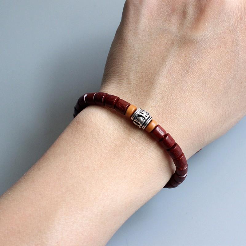 Natural Sandalwood & White Copper Mala Bead Bracelet