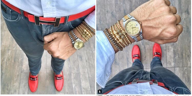 Want an accessory that can make you look like a guy with a very sophisticated and expensive sense of style? Then you need to make this Triple Double Rose Gold Rhinestone Macrame Bracelet yours right now. This fancy-looking bracelet is efficiently manufactured from Genuine Gold Plated Copper with Cubic Zirconia Micro Pave. To make it look even more stylish and available to all guys out there, this bracelet is also equipped with a Tension Setting, Lace-up &