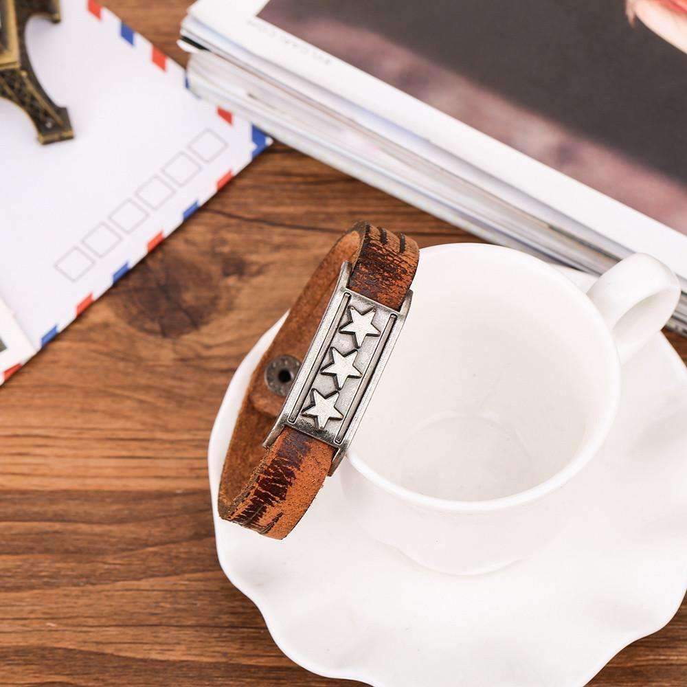 This Triple Star Genuine Leather Bracelet features the perfect marriage of vintage charm and high-quality materials. A combination that will surely make you fall from the moment you put it on.
