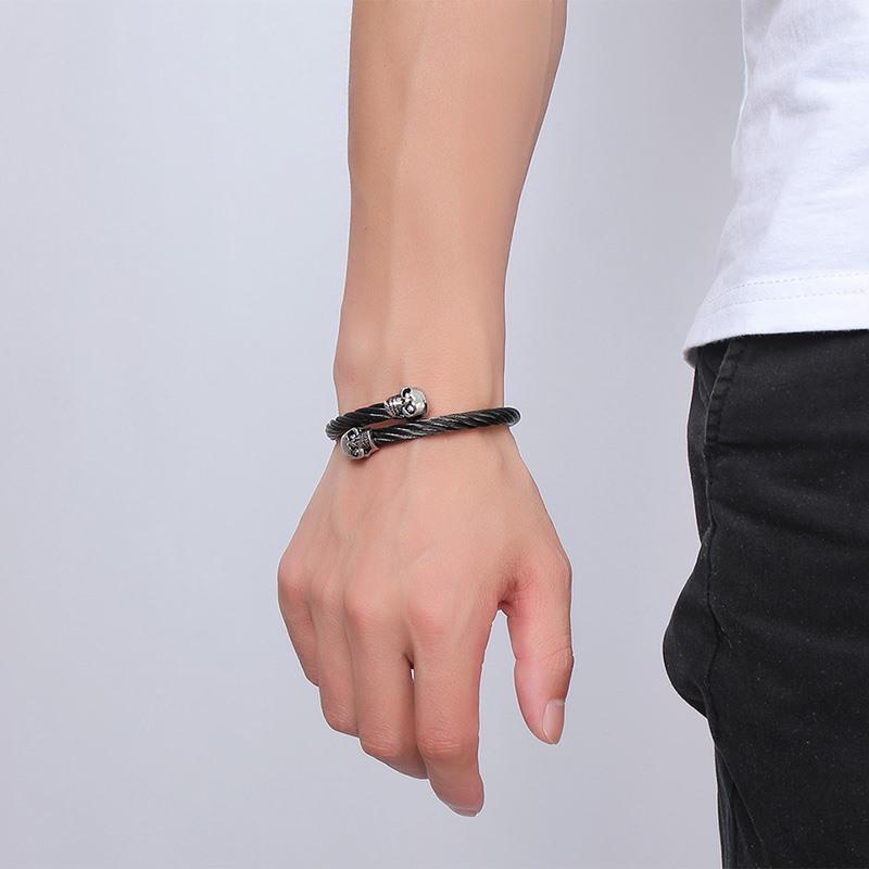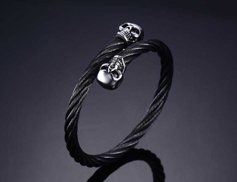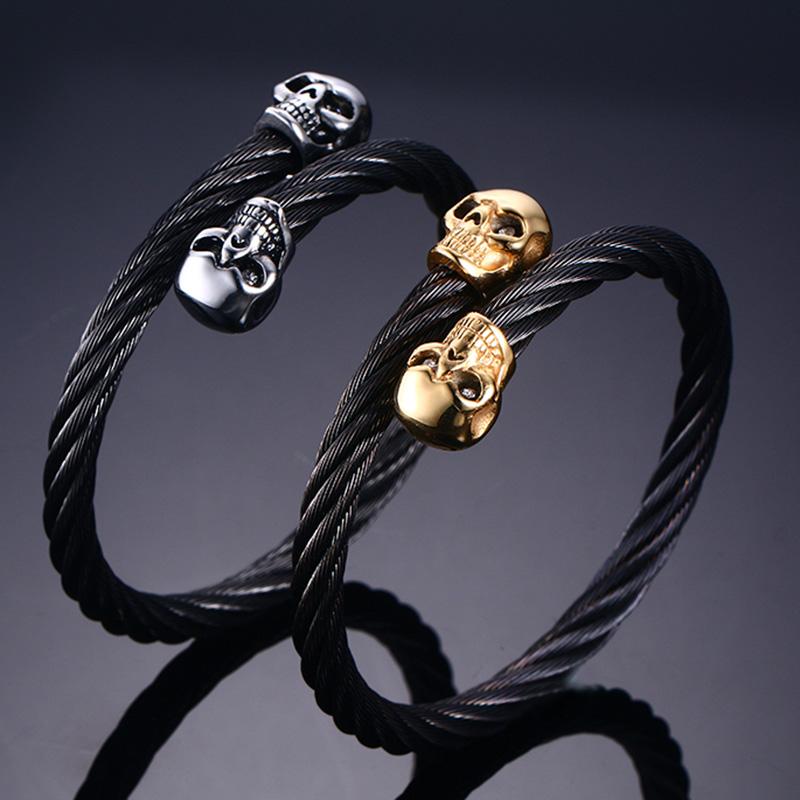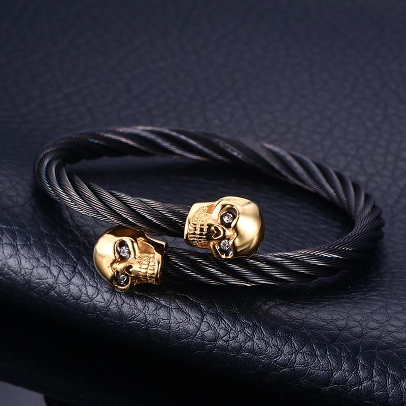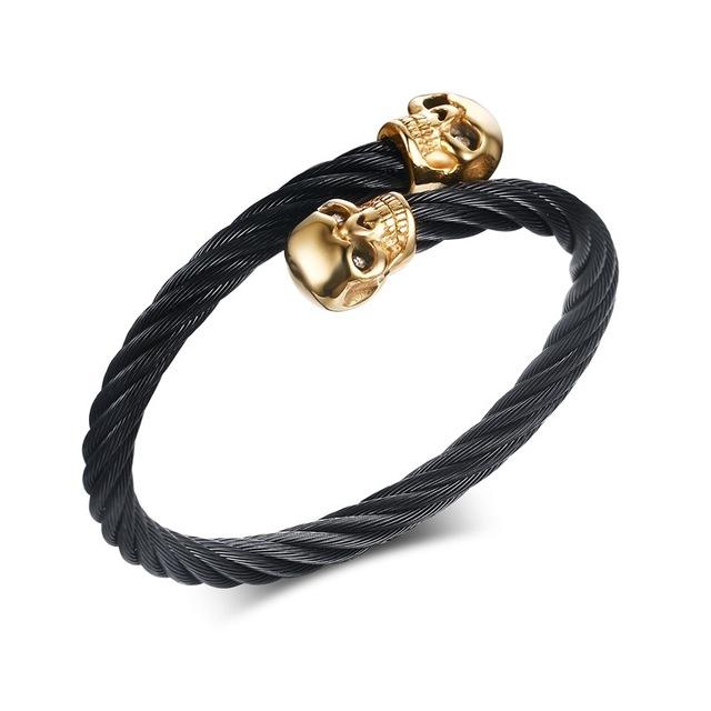 Undertaker Gold Skulls Twisted Wire Cable Bracelet - Zodeys
