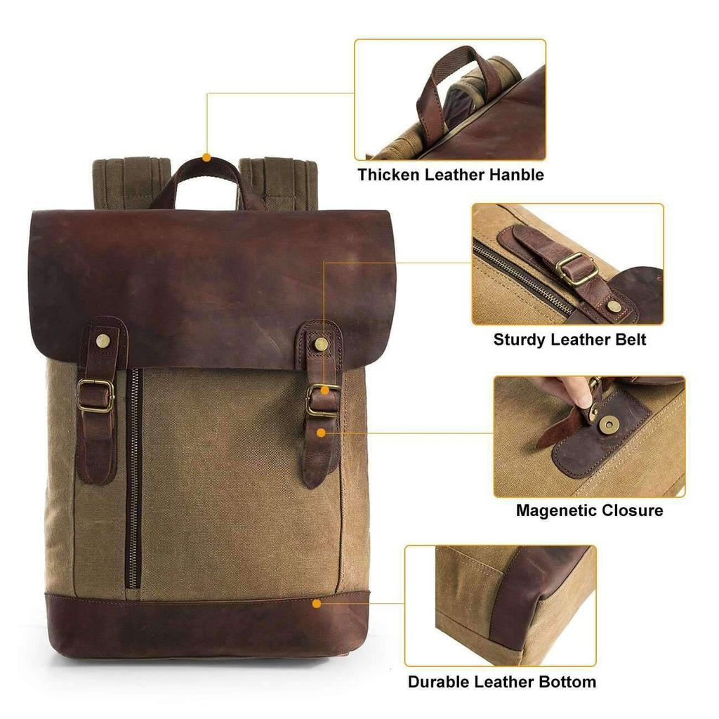 Unisex Vintage Canvas Leather Laptop Backpack