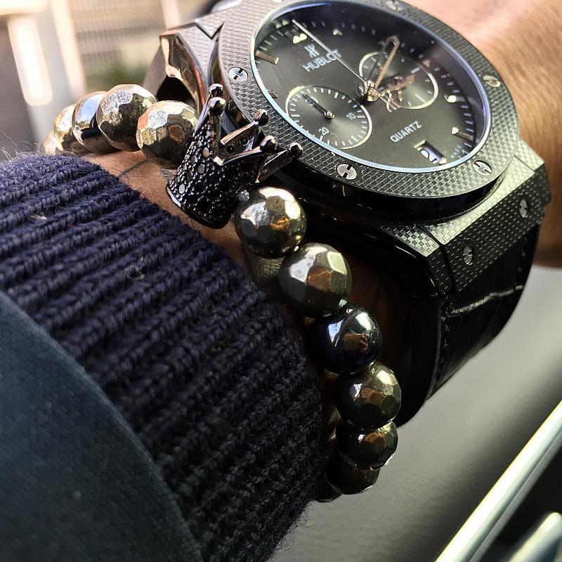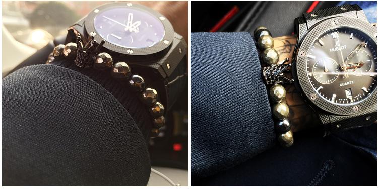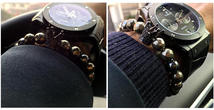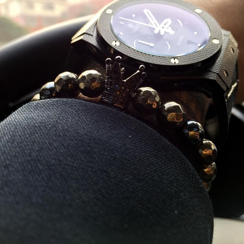 Vanilla Ice Beaded Rhinestone Crown Macrame Bracelet