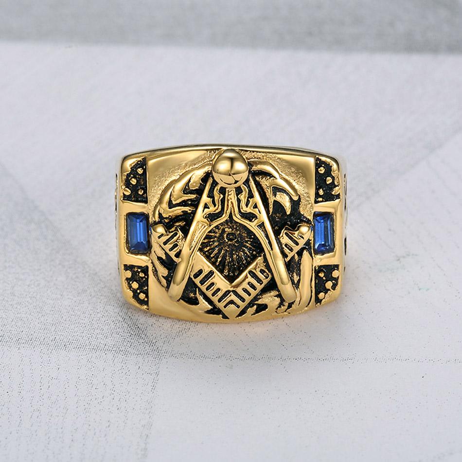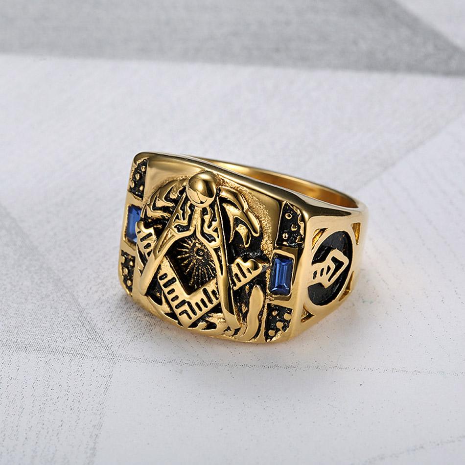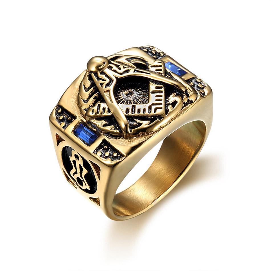 Vintage Blue Crystal & Gold Masonic Ring - Zodeys