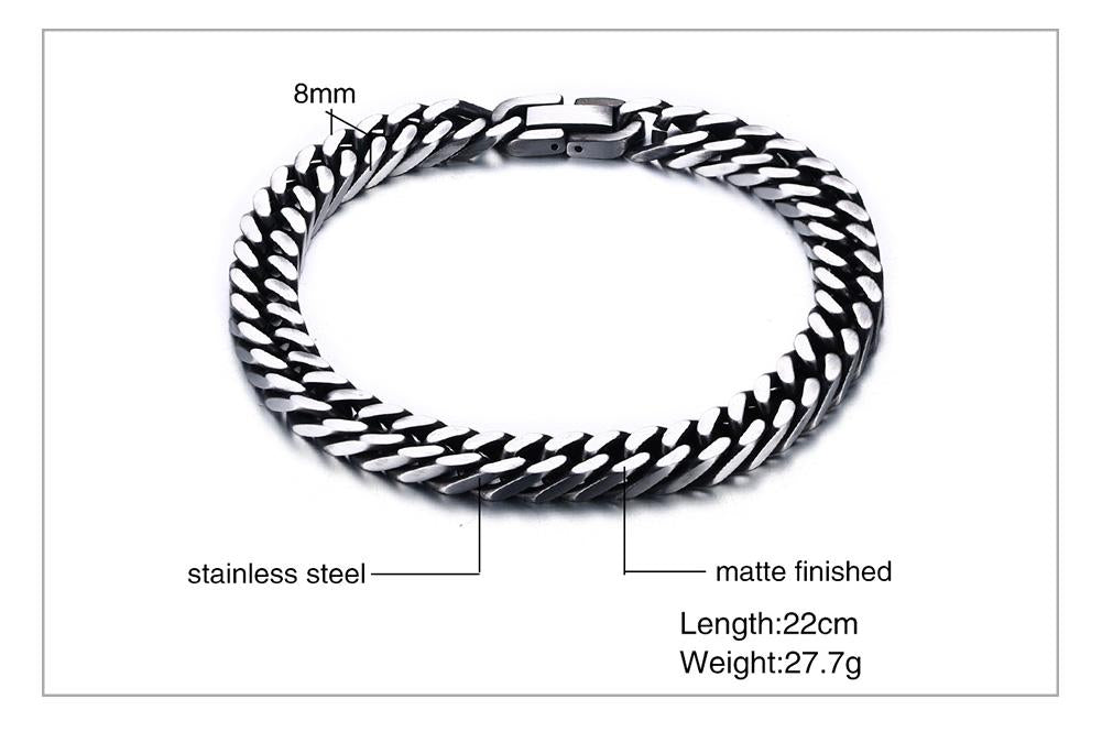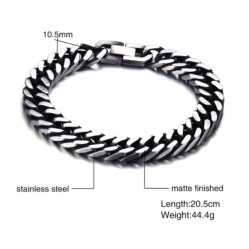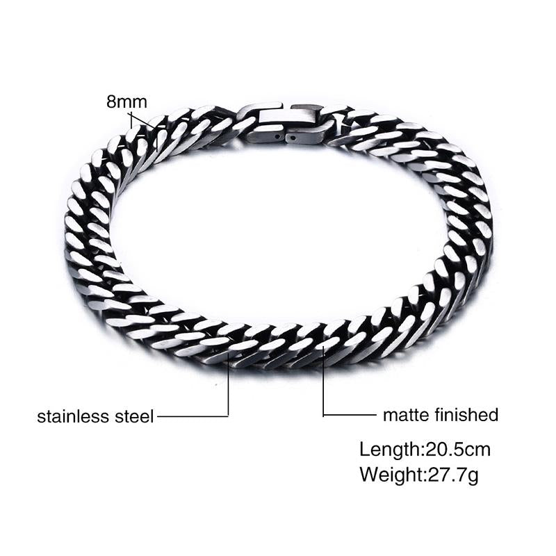 Link Bracelet is equipped with a set of features that will help keep it trendy all the time. It’s expertly crafted from 316L Premium Stainless Steel, providing it with a timeless look and outstanding durability. This vintage-chic bracelet also comes with a length of 20.5 cm and 8mm or 10.5 width options. And with a Fold Over Clasp, this Vintage Silver Bracelet will surely remain on your wrist all day long.