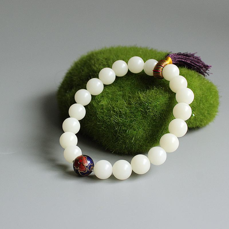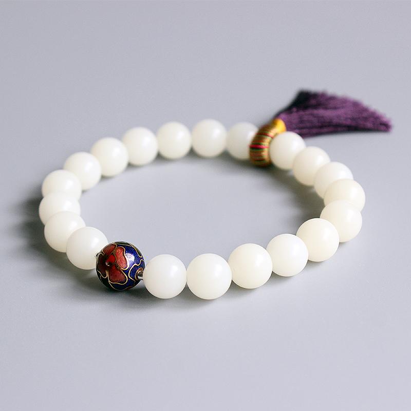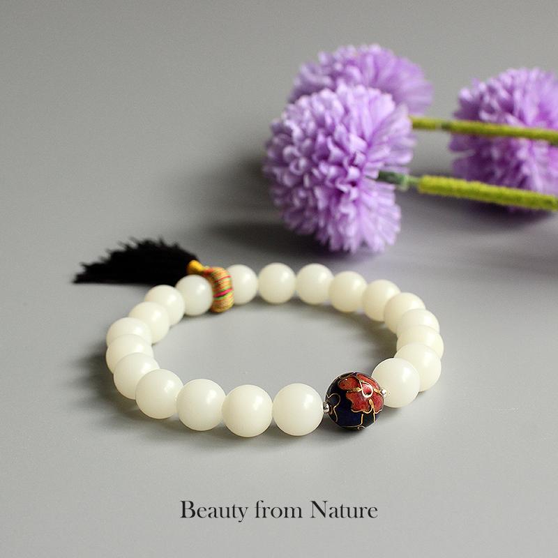 White Bodhi Seeds & Traditional Chinese Cloisonne Beaded Bracelet